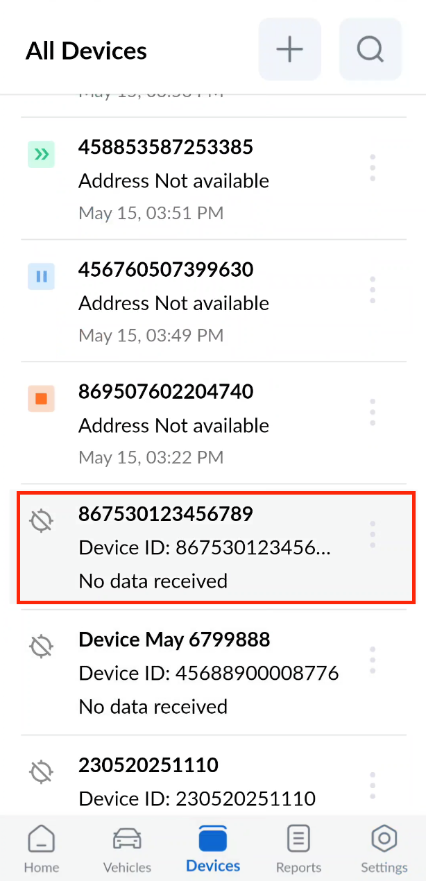 Vehicles are linked to tracking devices that transmit GPS and vehicle-related data to the server for location tracking purposes. These devices can either be physical OBD units that need to be plugged into the vehicle or GPS-enabled mobile devices. The Device List displays all such devices that have been registered on the portal.