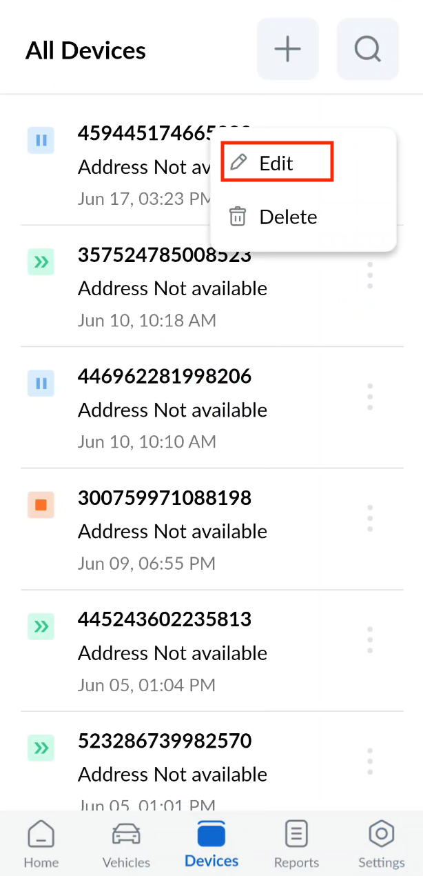 To edit a device, tap the triple dot icon