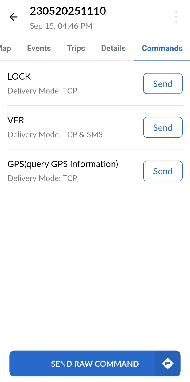 - You will be able to see the list of available commands for that vehicle/device if any.