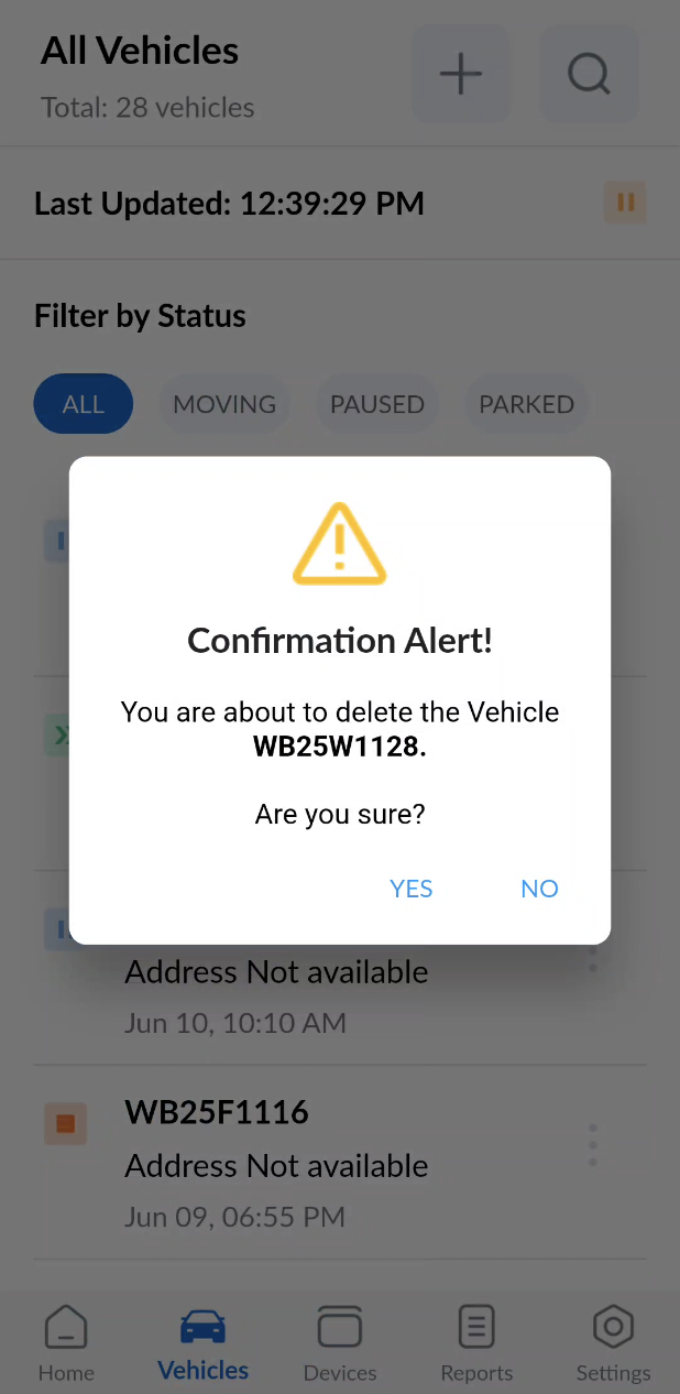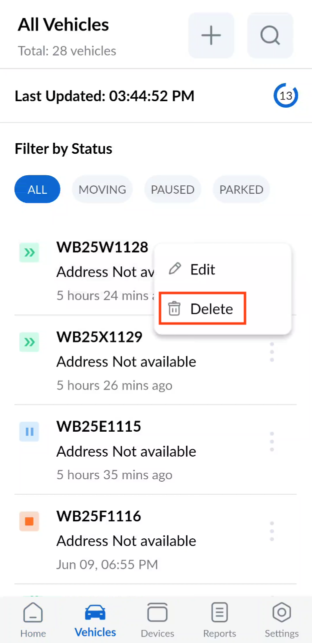 - You can filter vehicles by their status by tapping on the corresponding status buttons.
