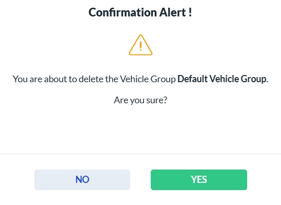 To delete a Vehicle Group, click the Delete icon in the Actions column. A confirmation dialog will appear. Click Yes to permanently delete the selected Vehicle Group, or No to cancel the action.
