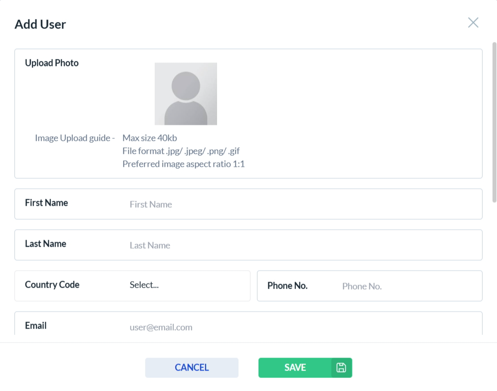 • Easily locate a admin user using the search functionality by entering the Admin User Name, Email, Phone Number, or Country Code.